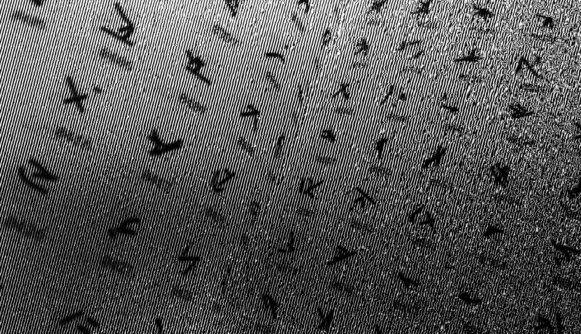 When trying to increase or decrease the weight of the selected glyphs, the signs, whose legibility depended on a few hints, lost all logic. With the thickness of the strokes modified they were rendered unrecognizable. In order to create the additional weights, Benjamin generated another two sets of ten thousand variations, one with heavier and one with thinner strokes, and started the selection process all over again.